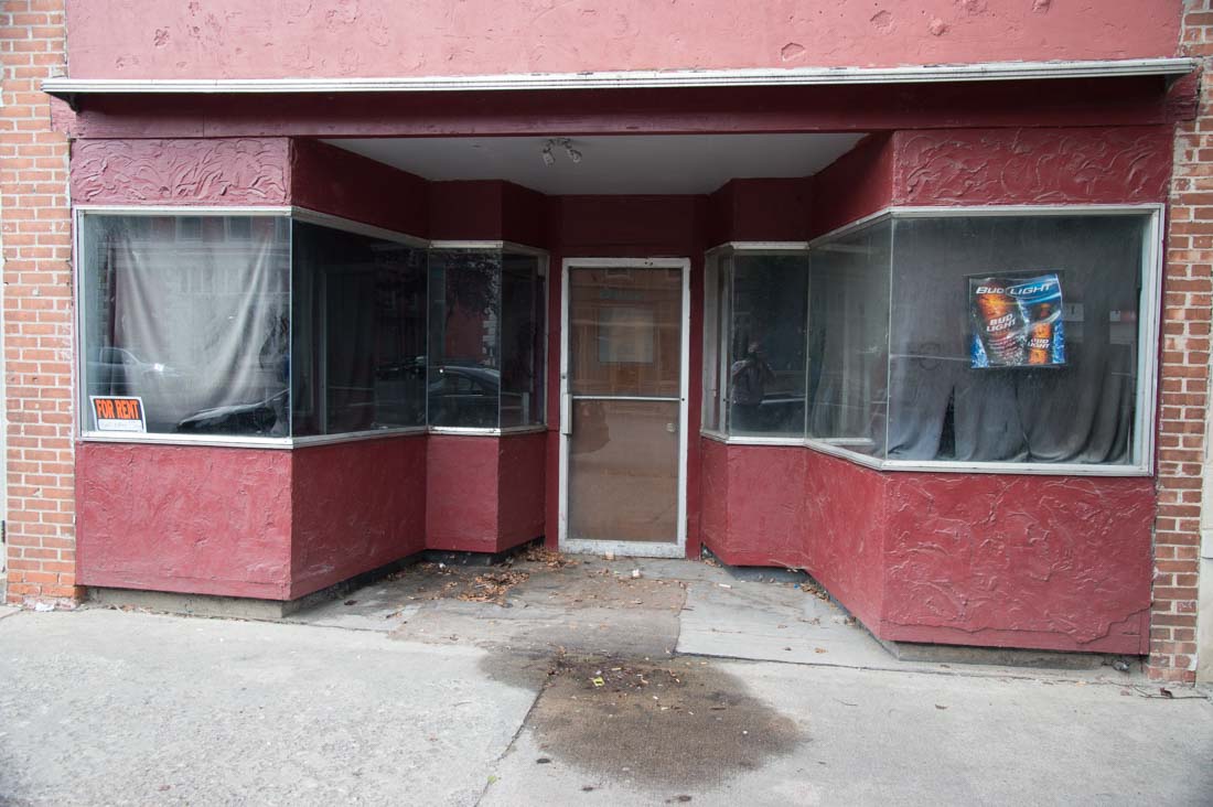 In some places abandoned storefronts would signal crime and danger. Here the people are mostly gone. Yet they still manage to leave their mark . . .