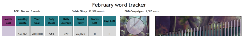 Hello, all! First off, a housekeeping note: going forward, I'm officially doing my Taleweaver's Desk updates in the last month of each season instead of the second — so, February, May, August, and November. I think this'll work out better in the long term; it'll conflict with fewer events and busy life bits, and I think these are months in which I'm more likely to have news to share.