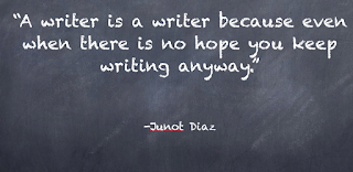 “A writer is a writer because even when there is no hope you keep writing anyway”….Junot Diaz