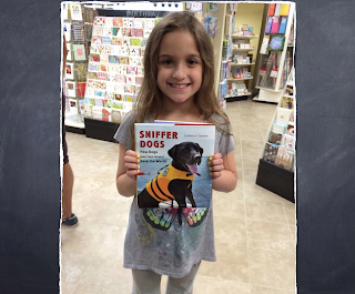 I tell them how reading a story in a local magazine about dogs who were sniffing out the poop of moose in the Adirondacks inspired my book Sniffer Dogs: How Dogs and Their Noses Save The World.