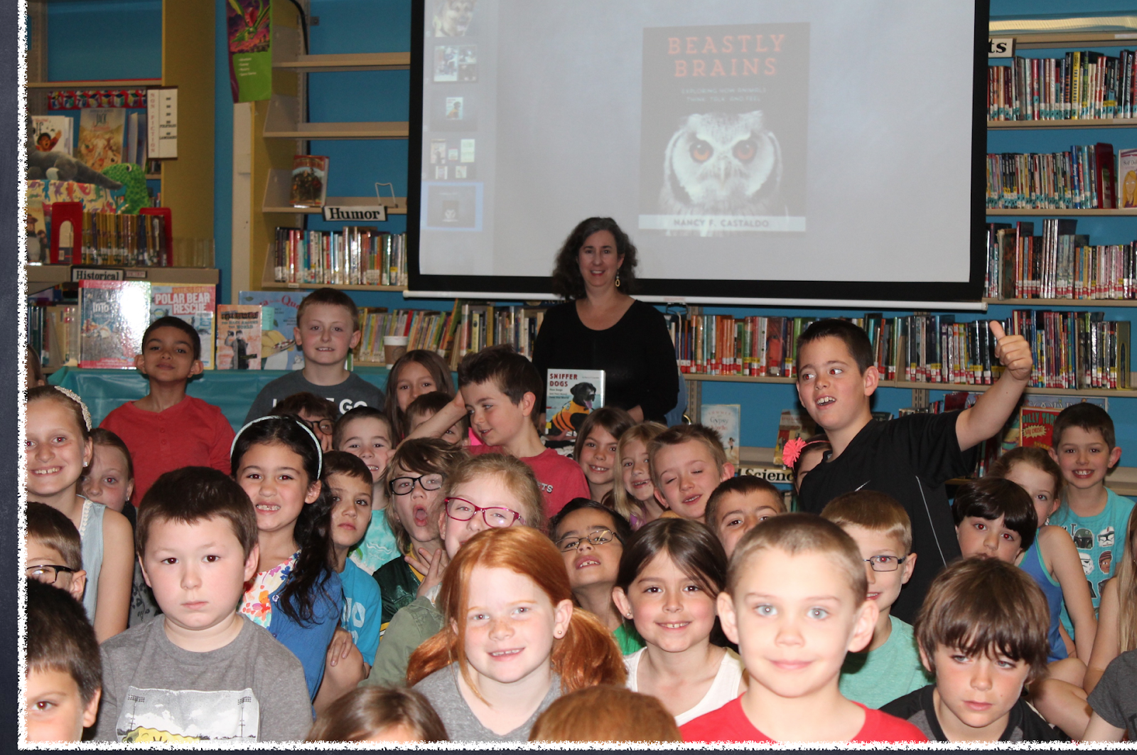 I tell them how reading a story in a local magazine about dogs who were sniffing out the poop of moose in the Adirondacks inspired my book Sniffer Dogs: How Dogs and Their Noses Save The World.