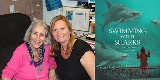 Eugenie was a force of nature and Lang spent time with her when writing her picture book biography, SWIMMING WITH SHARKS. Lang even tried scuba diving during her research.
