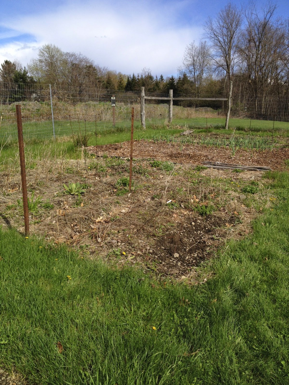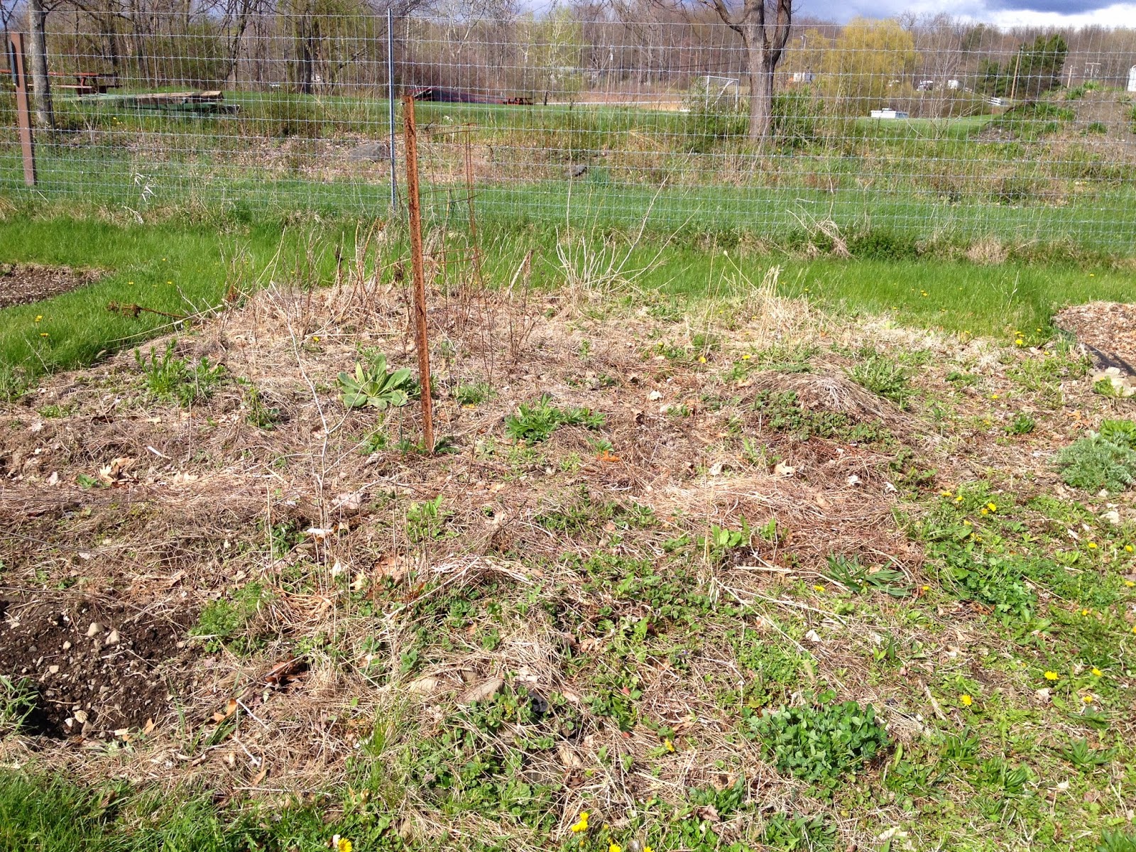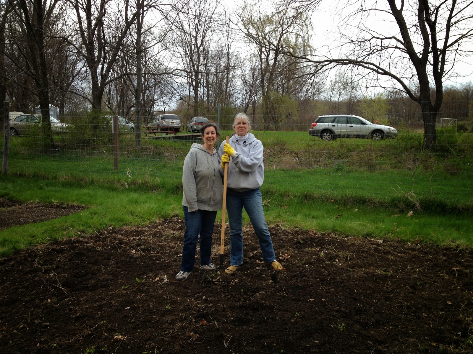 In need of LOTS of work.The sky was clear when we arrived at 4 pm, but there had been a downpour within the hour. It made the ground easy to dig and we got to work right away. Soon other gardeners arrived and they all grabbed tools and headed over to our plot. We were the "newbies" and they were all there to help us get it in shape for the season!