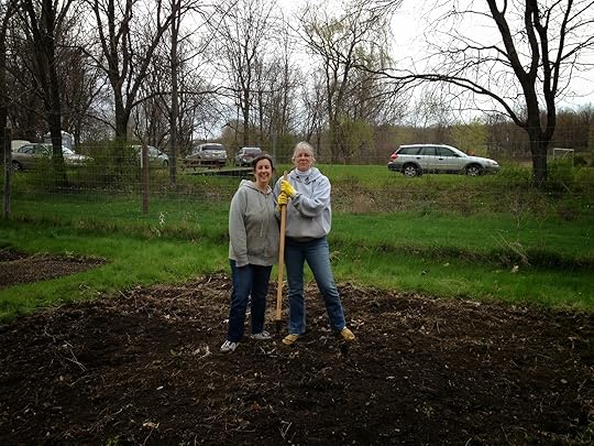 The sky was clear when we arrived at 4 pm, but there had been a downpour within the hour. It made the ground easy to dig and we got to work right away. Soon other gardeners arrived and they all grabbed tools and headed over to our plot. We were the "newbies" and they were all there to help us get it in shape for the season!