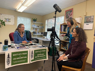 Annie and I interview Meg Chadsey (L) with Washington Sea Grant for PLANET OCEAN
