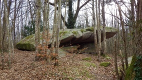 An interesting rock formation in the woods along the Anse de Poulguin (southern side) in Finistère. Although named a 'dolmen' it looks to be a natural rock formation.