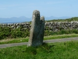 A standing stone at the north of the isle of Gigha - it now leans considerably out of the vertical towards the east and the top is divided into two peaks by a deep indentation due to the weathering of a natural fissure. Said to be a prehistoric lunar observatory by Alexander Thom - see comment and simulation below on our page from David Hoyle supporting this.