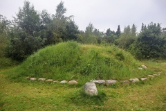 A burial mound with a 156m long stone row leading up to it. The mound itself was built in the early Bronze Age (1,700-1,100 BC) as a monument to the burial of an important person. Close to the burial mound, a grave was also built - in the middle of the stone row - dating to the Roman Iron Age (0-500 AD). It is not a coincidence that the person was buried in the middle of the stone row, and the burial shows that the stones still had a certain significance so many years later.