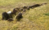 This stone walled chamber associated with chambered tomb is just visible on grass verge in front of the Auchrannie leisure centre building in Brodick, Isle of Arran. The nearby souterrain and round house have been filled in and built over leaving nothing visible.