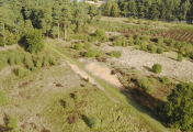 A round barrow discovered in recent years following the felling of forestry in Thetford Forest. Unfortunately, a footpath was cut clean through the middle of the central mound in the 1970s. It is a large earthwork - an inner mound, outer mound, and a large ring ditch. The barrow stands to a height of approximately 3m. It measures about 75m north east-south west by 57m north west-south east, and is surrounded by a berm up to 22m wide and a ditch.