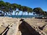 Shortly after 600 BCE Greeks from Phokaia established a trading settlement here on an island near the coast (now Sant Martí dEmpúries). They called it Emporion (=market). When this became too small they also settled on the mainland and called this Neapolis (= New Town). At the beginning of the 2nd Punic War (218 BCE) the Romans landed here and established a military camp, which later developed into the Roman town of Empuriae. The site has been excavated since 1908 and hosts a museum.