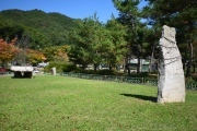 A dolmen and a menhir, or possibly two, to be found in Anteo prehistorical park. South Korea. Not to be confused with another - Okcheon prehistoric park, only 1km distance away. Around Anteo prehistorical park there are many flat rocks which seem to be the capstones of dolmens.