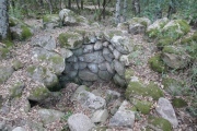 Nuraghe in Sardinia (Sardegna). Nuraghe Is Fanebas is located at the bottom of the beautiful valley of Riu Gutturu Mannu, in a forested area near the spring of Is Fanebas. The nuraghe is a small (circa 6m in diameter at its highest preserved part) single-towered structure with partly preserved tholos chamber.