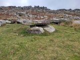A large flat stone balanced on a larger stone (left) and smaller sub-rounded boulder on right, provenance unknown. Possibly set up by ancient people but very difficult to prove this. [With thanks to Dooclay for exploring and sending in photos and information on many other sites in this area - see the nearby sites list on this page for more - MegP Ed]