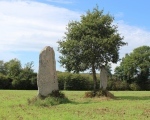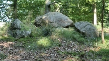 Dolmen on a long barrow, 25 meters long, 18 meters wide. In the middle of the mound, a chamber 2 meters long and 0.7 meters wide is formed by a stone on each side. Seven of the curb stones are now visible, of which only the one in the middle of the south-eastern long side seems to be original.