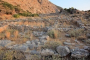 The Late Minoan (LM) IIIC settlement of Chalasmenos is located on a low hill (240 m above sea level) immediately to the south of the Cha Gorge near the village of Monastiraki in eastern Crete. The settlement was relatively large for the period, comprised of an estimated 4,000 m², and provides evidence for a degree of urban planning. The site was divided into four quarters, which were separated by roughly paved pathways, and an open, triangular-shaped area (plateia) occupied the centre of the settlement (a contemporary kiln was also found at the northern end of this open area).