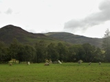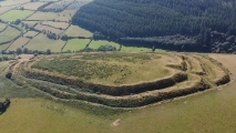 This is the more southerly of two hillforts in Shropshire named Caer Caradoc. The earthworks are well preserved with several ditches at least one entrance. The fort is accessible via a footpath on either side, sheep roam over the hill and there is a fair bit of gorse growing on the top. On a clear day looking towards the east from the gates you can see the standing stone of Pen-y-cwm.