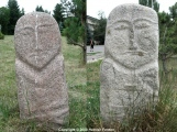 Sculptured Stones in Kyrgyzstan. There are about 25 Balbals in the park in the centre of Karakol, Kyrgyzstan, pictured here in 2010. These balbals have been collected from the surrounding countryside. As with anything you might find in a public park some have been vandalised, including being daubed with paint. the stones seem pretty neglected some hidden in undergrowth or toppled over, most of the stones here stand aound 1.5metres of of the ground although there are some taller and also shorter examples.
