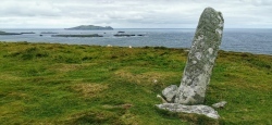 An ogham stone stands upright on the summit of the headland in Co. Kerry. This lay prostrate when first recorded, but was subsequently re-erected. It stands 2m high and is .45m wide x c. 0.3m thick. The inscription reads: ERC MAQI MAQI-ERCIAS (MU) DOVINI(A). The second last word, as recorded by Macalister, is now unclear.