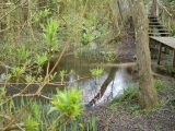 The spring and pool are in a steep gully situated in Lord Carrington's Lyde Gardens (often open and free to enter) next to the 12th century Holy Trinity Church. The east side of the churchyard overlooks the gully where water from eight springs emerge. The area has been considerably developed with walkways, bridges and a small colonnade at the southern end creating a very peaceful atmosphere.