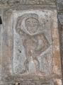 The interior of the church contains two cross shaft fragments, a likely sheela-na-gig (pictured), and a carving said to be the inspiration for Lewis Carroll's 'Cheshire Cat' (see further down our page). In the external walls are some other fragments, including a third cross shaft fragment, a scratch dial, and part of a carved Romanesque lintel. Guy Points, in his Yorkshire Gazetteer of Anglo-Saxon and Viking Sites (page 130) tells us the church is "evidently on the site of an earlier 11th century structure", with the evidence provided by the cross shaft fragments which date from the 8th to 10th centuries.