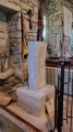 The Selus Stone at St Just, Cornwall. Inside St Just's Church there is a 5th or 6th century pillar stone with a Latin inscription and a chi rho cross. It commemorates St Selevan or Levan, the brother of St Just (Jestyn). Originally it was built into the church wall near the altar, but in 1824 it was stood up-right. Standing at 5 foot 5' tall, on a large square base, it is a Romano-Christian stone.