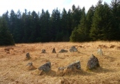 The Prehistory of Bellever guided walk, Weds 27 Jul from 1pm, details in the comments on our page. Cairn Circle on Lakehead Hill, near Postbridge, Dartmoor. One of several ancient sites on Lakehead Hill, see our nearby sites list for more. Just to the north of Cairn 6 is Cairn 5, a nice circle of 10 pale slabs with a diameter about 7m, slightly larger than cairn 6, as are the stones. There is no signs of a cist within the circle, but a few slabs to the southeast may have made up part of a row to the cairn.