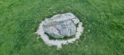 Reports that this stone in Switzerland has been broken in half and the top part is missing.. This stone lies on the southeast corner of a small wood near the Kronau shooting club, and is similar to other holed stones in the area, such as Grüti, Rembrig, and Baaregg Haselbach. (see nearby site list) The hole's azimuth is 353°. almost N / S.