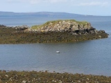 The tidal island of Dun Maraig in Poll na h-Ealaidh, Isle of Skye has the vague remains of a fort on it. Once it was connected to the shore by a causeway, and it is still possible to walk across to it at very low tide.