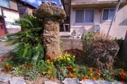 More than seven Kasaishi's seem to have stood in Honmura (本村) village but only four remain. As at Rocha dos Namorados in Portugal, people who wish for fertility place pebbles on the cap stone. Top photo: a stone phallus beside the police office.