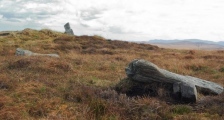 This propped stone is situated on top of the granite outcrop which makes up the central area of the cairn on Ugborough Beacon. The stone appears to originate from the outcrop itself, and is propped by a single stone inserted under the north end. No dating evidence has been recovered from the cairn, but similar features on Dartmoor are usually thought to date from the Early Bronze Age. As propped stones have generally been dated as Early Neolithic (approximately), there is the possibility that this site had religious significance over a period of a thousand years or more.