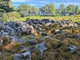 On a hilltop overlooking the Trondheimsfjord to the east is a pretty barrow cemetery with seven iron age burial cairns. The cemetery is covered only with moss and all the cairns are easily visible with most of the stones bare and no vegetation at all. Two of the cairns have been restored in recent years.