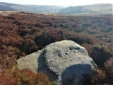 This carving is found near the end of a lengthy line of prehistoric walling that runs east-west over this part of the moor, it looks uncannily like a skull or screaming face, or possibly a pig. There are currently no references to this stone on the Historic England site or the (currently offline) England's rock art pages, even though it is close to the Tree of Life stone.