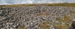 Gamelands embanked stone circle in Cumbria has an oval enclosure of 40 large stones, all fallen, and three additional smaller stones. This view is from just up the hill, where you can also see the cairns at Raisbeck (see nearby site list). All of the Gamelands stones are shap pink granite apart from one which is limestone. None exceed 0.9m in height and their circumferences at ground level vary between 1.9m and 3.8m. The stones are set into a slight bank approximately 2.5m wide and up to 0.2m high.