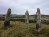 Three approximately 1.8m (6 feet) tall and very impressive stones. Lichen and bird poo abound. With commanding views of North-West Anglesey, on a sunny day this would no doubt be a great spot.