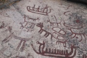 Backa, just outside Brastad, is the densest area in Sweden for rock carvings and must have been an important religious centre during the Late Bronze Age. The outcrops are covered with various motifs such as ships, sun wheels, cup marks, human figures, carriages, footprints and a variety of other shapes.