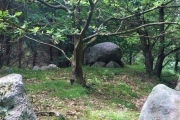 Pictured is the most impressive long barrow with 159 kerbstones. It is 88m long by 8m wide and was restored in 1936. The chamber has 5 uprights and a capstone.