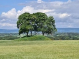 This huge round barrow in Hedmark, Norway is located in the middle of a grain field and on top of a small ridge overlooking the lake Mjøsa. The barrow is around 3 metres in height and 22 metres in diameter with steep sides and a flat area on top around 10 metres in diameter. Four maple trees are growing on the sides.