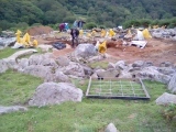 Currently under excavation (Aug 2021) by Cymdeithas Archaeoleg Bro Ffestiniog Archaeology Society, the site has been investigated since 2018. This is a complex site that appears to contain multi-period monuments, i.e. a cist burial dating from the bronze age, a round house, a large enclosed homestead dating from the medieval period to the 18th cent and more modern artefacts. Finds include flint, a ring dating from the medieval period and 18th cent pottery. Bones have also been discovered within the vicinity of the cist burial.