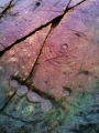 We have linked videos of several recent online rock art presentations in the comments on this page. There are three cup-and-ring marked outcrop rocks at this largest and most extensive group of prehistoric rockcarvings in Scotland. The site also boasts the largest cup-and-ring mark in Scotland. With its radial grooves it looks like a giant spider web over 1m in diameter.