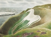 One of a set of hill figure illustrations by Eric Ravilious painted in 1939. Now available as a set of postcards from Rather Good Art. An exhibition celebrating the art of Ravilious opens on the 25th of September at Wiltshire Museum.. Tradition has it that the original white horse on this site was cut to commemorate King Alfred's defeat of Guthrun in 879. However, the earliest mention seems to be by the Reverend Wise in his 1742 book "Further Observations on the White Horse and other Antiquities in Berkshire". The present version of this hill figure was cut in 1778 by the steward of Lord Abingdon. With concrete added to hold the edging stones in place during the early twentieth centure, the horse was finally totally covered in concrete in the 1950s and again in 1990s.