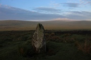 The summer solstice sun just about to rise over Waun Mawn standing stone, more photos on our page. A standing stone 2.3m high, 1.2m by 0.7m thick, part of the Talfarn y Bwlch Stone Complex, Nr Brynberian in Pembrokeshire.