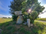 A dolmen in Saban-ri, South Korea. Most are black-gray but unlike other dolmens around here, the stone colour here is white. I guess it's a unique colour, but the stone here seems to have a different characteristic than anywhere else. The dolmen is in the middle of a field. There was a lot of agricultural waste thrown away around it. Its cultural heritage, but people feel indifferent. I wish people would be more interested in dolmens and manage them.