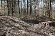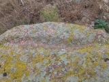 This Teufelsstein (Devil´s stone) is located on the old boundary to Klockow, on a hill near the lake Bröckersee, Brandenburg. This reddish granite stone is today overgrown with black-brown and yellow mosses and lichen. On the south side of the stone is a prehistoric groove (pictured) and the stone should also contain some cup marks, but I have not yet been able to find these. A deep crack and drill holes indicate that stone cutters have been at work in the past and unfortunately damaged the stone.
