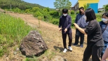 A dolmen located at Harry Elementary School in Harry-myeon, South Korea. It was explored by the Youth World Heritage Exploration Team of Dolmens. As you can see in the photo it is right by the side of the road. There are six more dolmens nearby.