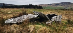 A wedge tomb in Co. Cork on flat boggy land on the north side of the Garrane River valley. It is well preserved and comprises a gallery aligned east-west, surrounded by closely set outer walling. There is a short portico at the western end separated from the main chamber (L c. 3m) by a short septal stone set in front of two jambs.