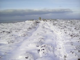 Snow!. Round Cairn in Gwynedd. Situated on the leading lower edge of the NW summit of Moel Y Ci, the cairn is easily accessed via well established footpaths. Moel Y Ci is an enclosed moorland environment. The cairn is circular with a diameter of 14m and raised to about 1m. A walkers shelter has been constructed within the cairn from the available stones and a concrete pillar has been erected at it's centre.