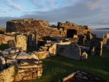 The Brock of Gurness at midsummer dawn, more amazing photos on our page. The Broch of Gurness is an imposing fort on the north shore of Mainland Orkney. Of classic drystone construction the Iron Age round tower fort is flanked by a number of ancillary structures and impressive concentric ditch and rampart outer defenses; moreover, the rocky shoreline cliffs posed an formidable approach for marine invaders.