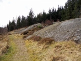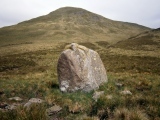 A standing stone in Dumfries and Galloway, on the SW slope of Bodesbeck Law, approximately 5 miles NE of Moffat. Viewed from the SW, the stone mimics the summit profile of Bodesbeck Law behind it. I found two possible standing stones recumbent in the vicinity of Peatshiel Sike, so it may have been part of a stone alignment or setting.