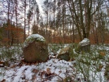 This iron age stone circle in Brandenburg consists of about 15 small stones, the largest is approx. 70 cm tall, others protrude only a few cm from the ground. The place has the name because of an old legend meaning that it is the cemetery / churchyard (Kirchhof) of someone named Bärens who, according to the legend, died there.
